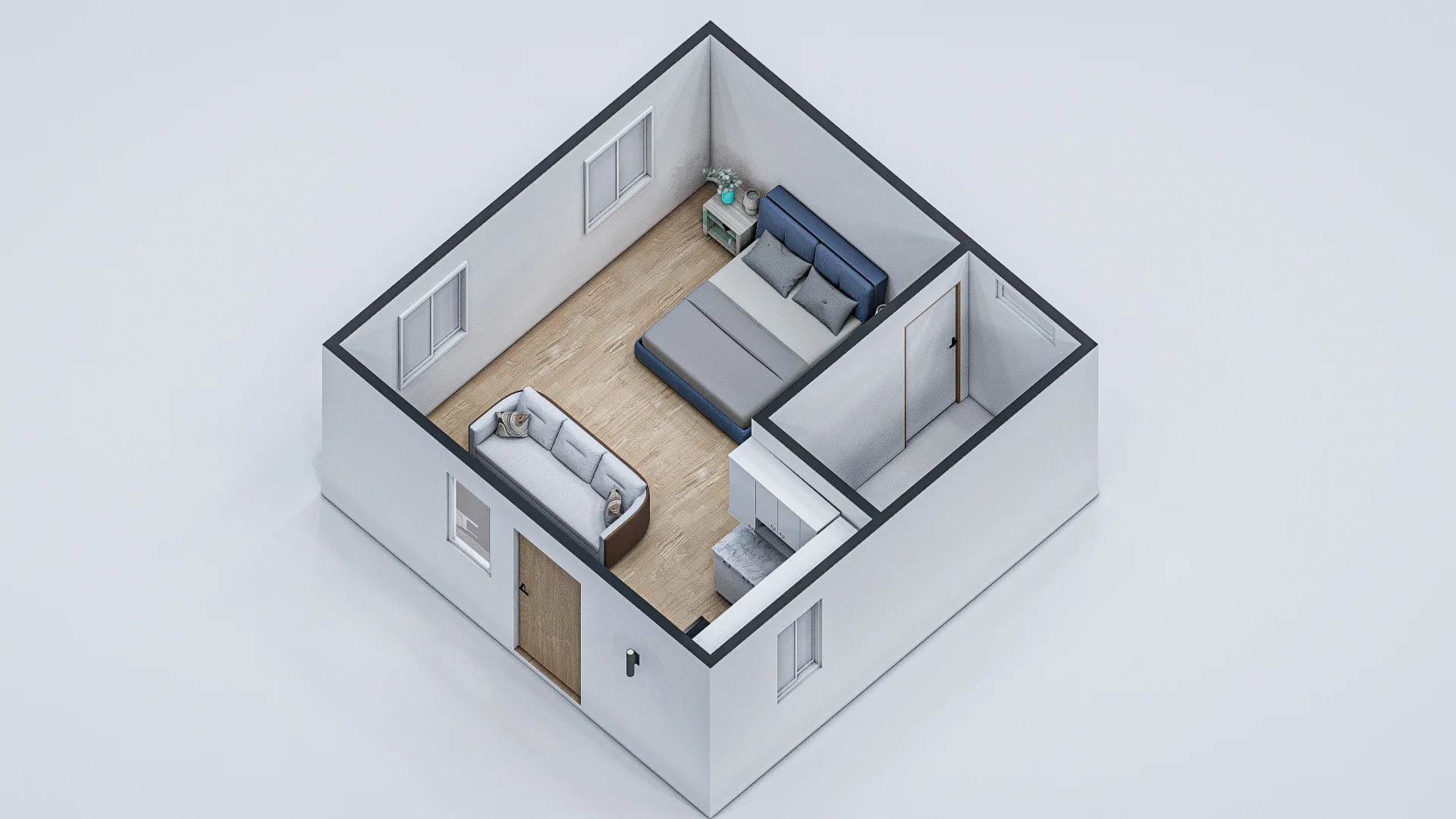 Introducing our 500 SQFT ADU plan, a thoughtfully designed 1 bedroom ADU that maximizes space without compromising on comfort. This Accessory Dwelling Unit (ADU) features an open-concept layout, perfect for singles or couples seeking a cozy and efficient living space.